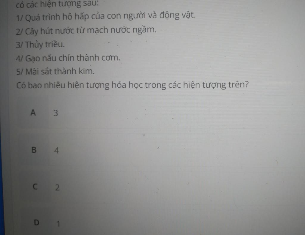 Có bao nhiêu hiện tượng hóa học trong các hiện tượng trên?