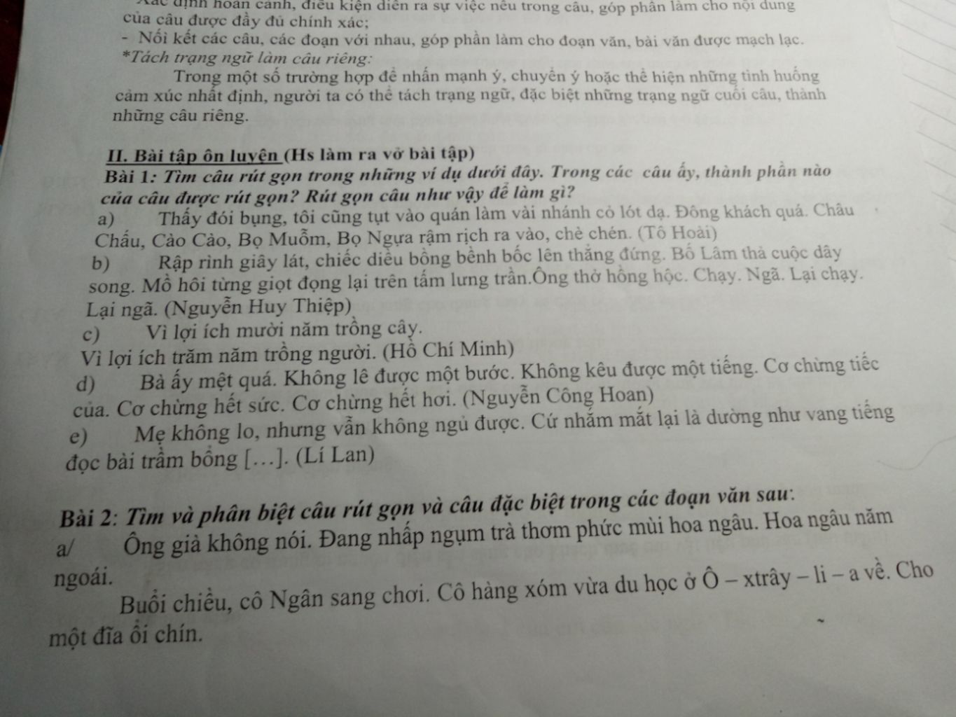 - Câu rút gọn: Không lê được một bước. Không kêu được một tiếng. Cơ chừng tiếc của. Cơ chừng hết sức. Cơ chừng hết hơi.