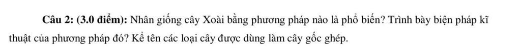 Phổ biến nhất hiện nay là gieo hạt và ghép. Đây là phương pháp nhân giống xoài rất phổ biến ở nước ta và môt số nước khác. Vì hạt của nhiều giống xoài có hiện tượng đa phôi. Cây mọc lên từ phôi vô tính thường giữ nguyên đước những đặc tính tốt của cây mẹ tuy thời gian ra hoa kết quả có chậm hơn so với cây xoài ghép.