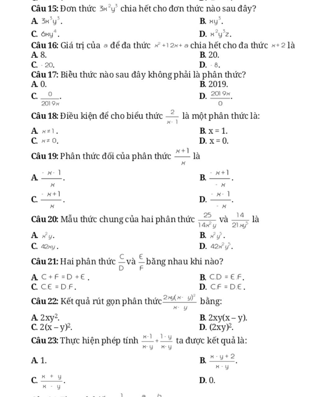 Câu 17: Biểu thức nào sau đây không phải là phân thức?