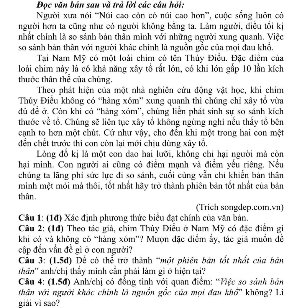 Em đồng ý. Vì khi so sánh, phần lớn tâm lý của ta sẽ gắn liền với đố kỵ khi thấy người khác tài giỏi hơn mình. Hoặc không thì ta sẽ sinh ra tâm lý tự ti rồi buồn bã, thất vọng và không dám làm bất cứ điều gì. Đó chính là nguồn cơn của đau khổ. Do đó, chỉ khi tự ý thức được khả năng, năng lực của bản thân và tránh tâm lý so sánh là điều cần thiết.