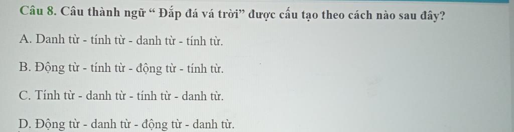 + Từ'' Vá'' là động từ và từ'' trời là danh từ''