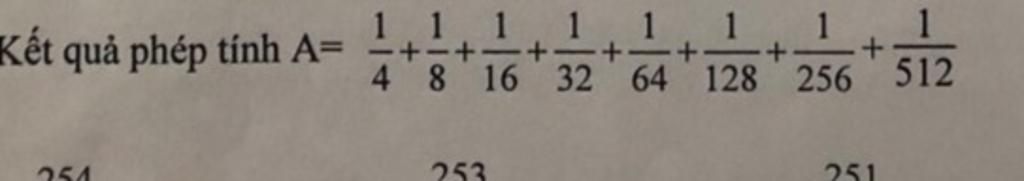 `A = 1/4 + 1/8 + 1/16 + 1/32 + 1/64 + 1/128 + 1/256 + 1/512 `