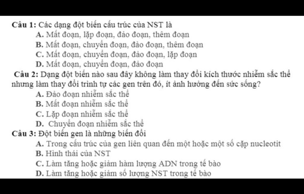- Dạng đột biến cấu trúc nhiễm sắc thể: Mất đoạn