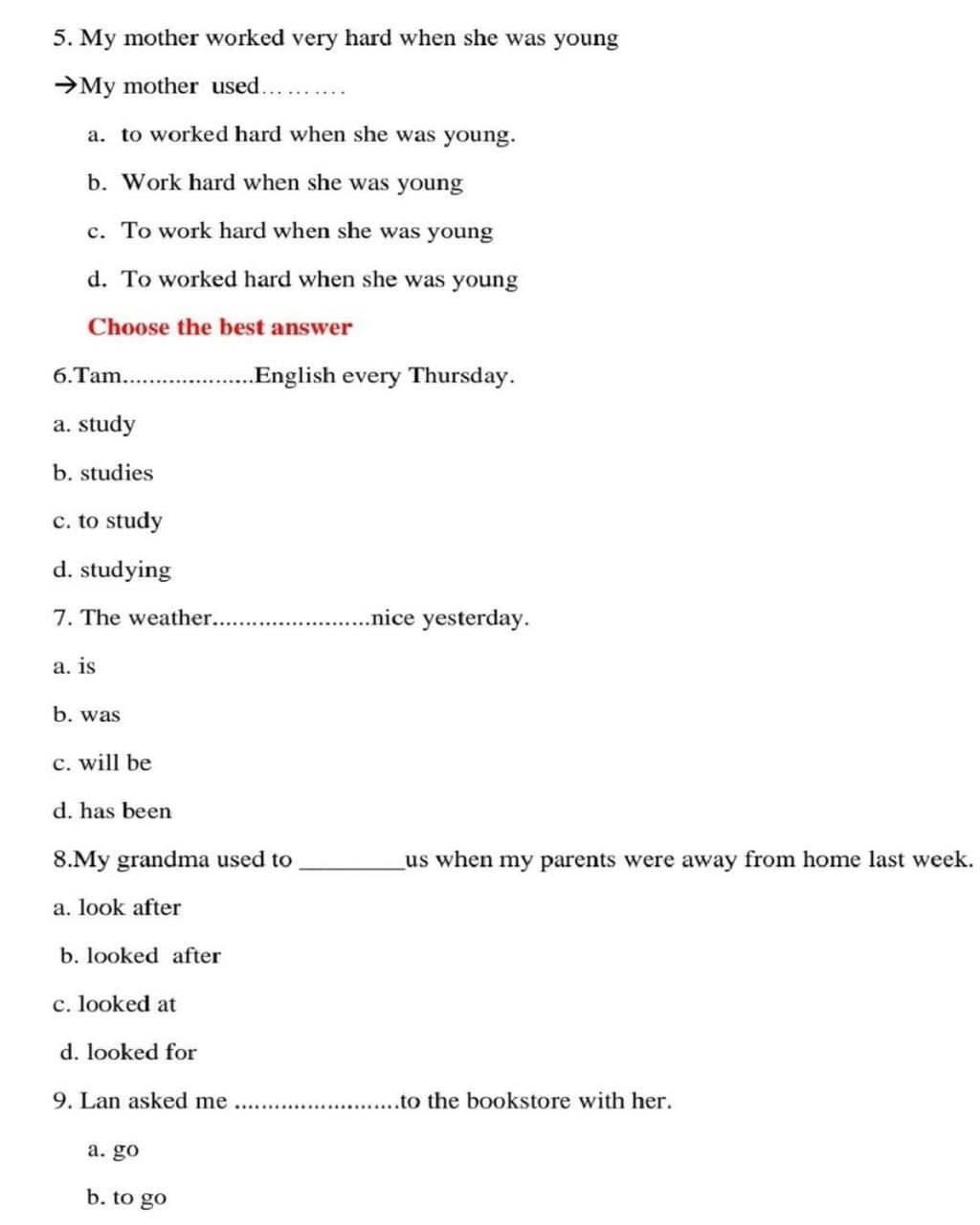 -Sử dụng cấu trúc used to + V-inf: trở nên quen với.......