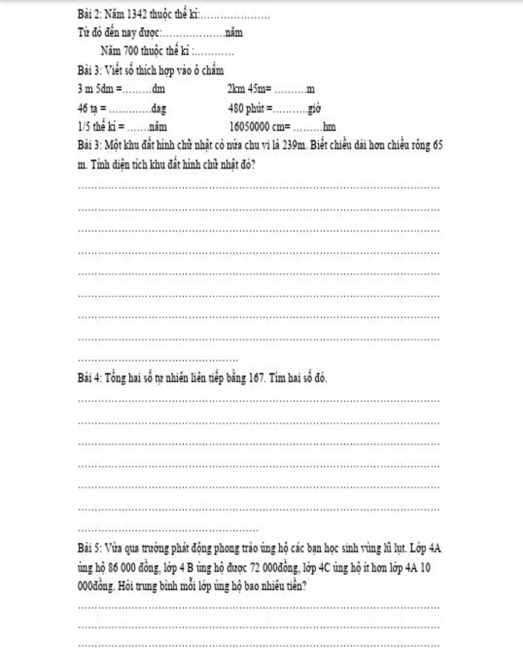 1/5 thế kỉ = 20 năm 16050000cm = 1650 hm
