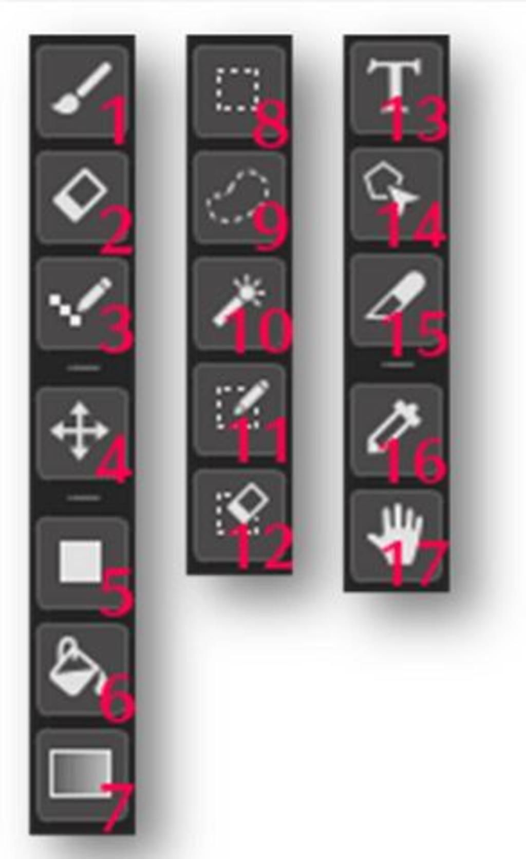 Dưới đây là danh sách toàn bộ 17 công cụ có trong phần mềm Mediabang Paint: