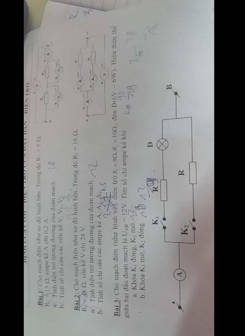 Bài 1: Cho mach dien nhur so đo hình bên. Trong dó R =5Q.