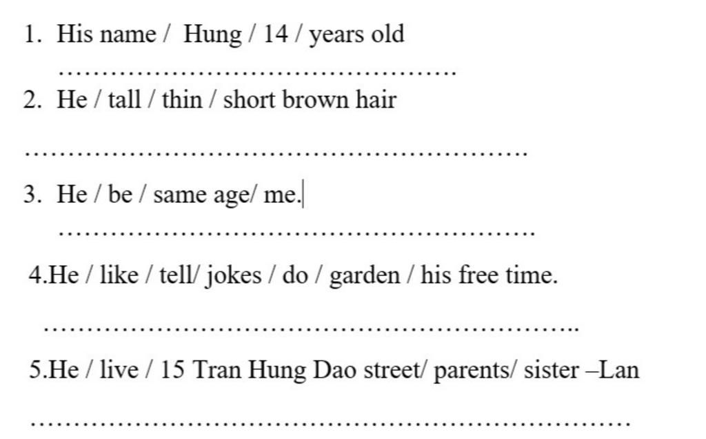 $-$ Dịch: Tên của anh ấy là Hùng. Anh ấy 14 tuổi.