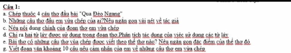 d) Cuộc sống và con người nơi đèo Ngang, cảnh vật có sự đối nhau. - Các từ láy: lom khom, lác đác; các từ tượng thanh: quốc quốc, gia gia có tác dụng lớn trong việc gợi hình, gợi cảm và tô đậm vẻ hoang vắng, quạnh hiu. - Tiếng kêu quốc quốc, gia gia càng làm tăng thêm nỗi nhớ nhà.