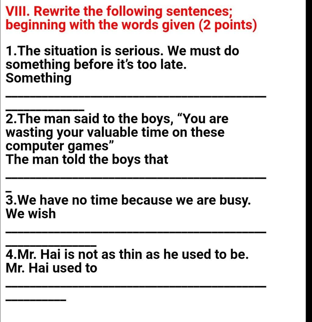 `1`. The situation is serious. Something must be done before its too late. (đề thiếu nên bổ sung phần còn lại)