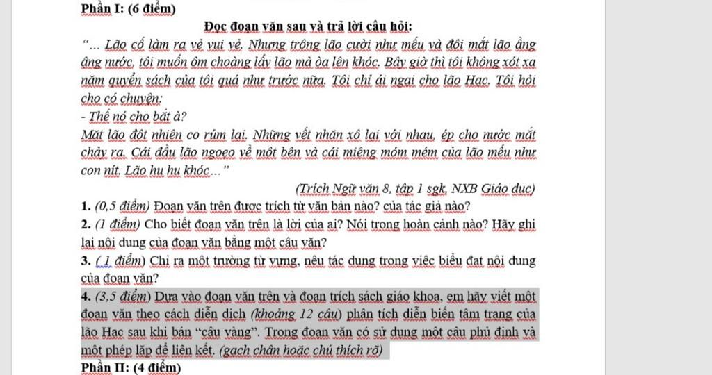 Câu chuyện tưởng như cũng chẳng có gì ghê gớm lắm. Bán một con chó đâu phải chuyện động trời động biển gì. Với người khác, câu chuyện ắt sẽ rất bình thường nhưng với lão Hạc thì không. Bởi con chó đối với lão không chỉ là một gia tài mà nó còn là một kỉ niệm, là tình thương của cha con lão. Mà với lão lúc ấy chắc chẳng có gì quan trọng hơn đứa con trai. Cậu Vàng là một kỉ vật. Chính bởi thế nên khi bán chó xong, Lão Hạc day dứt lắm. Lão muốn tìm ai để chia sẻ. Lão vội nghĩ ra và sang ngay nhà ông giáo. Gặp ông giáo “Lão cố làm ra vui vẻ. Nhưng lão cười như mếu và đôi mắt lão ầng ậc nước”. Ngày con lão bỏ đi chưa chắc gì lão khóc vậy mà bây giờ lão đang “ép” những giọt nước mắt khó khăn của một ông lão đã đến tuổi gần đất xa trời. Có như vậy ta mới thấy lão là người tình nghĩa. Và quan trọng hơn sau những giọt nước mắt kia ta tủi thân cho lão, một con người “chẳng bao giờ có quyền giữ cho mình một cái gì”. Và rồi sau cái vẻ mặt khổ sở kia, lão nức nở như con nít. Lão ngồi đó mà tưởng tượng ra đầy đủ và trọn vẹn cái cảnh thằng Mục và thằng Xiên bắt chó. Lúc ấy cậu Vàng nhìn lão như kêu xin rồi như oán giận. Lão kể cho ông giáo nghe tỉ mỉ và sống động như cậu Vàng là một con người thực vậy. Câu trách của cậu Vàng mà lão nghĩ ra nghe mới chua xót làm sao: “A! Lão già tệ lắm! Tôi ăn ở với lão như thế nào mà lão đối xử với tôi như thế này à?”. Với lão Hạc, lừa bán một con chó có khác chi đã đánh mất cả một đời lương thiện: “Thì ra tôi già bằng này tuổi đầu rồi còn đánh lừa một con chó”. Có thể nói đoạn kể chuyện của lão Hạc đã chứng tỏ sự gắn bó sâu nặng của lão với kỉ vật đứa con trai. Đồng thời cũng thể hiện cái bản chất lương thiện của một lão nông dân khốn khổ. Một con người đến làm ác với con vật còn không sao làm nổi thì không có lý gì lại sống xấu xa, ác độc với mọi người.