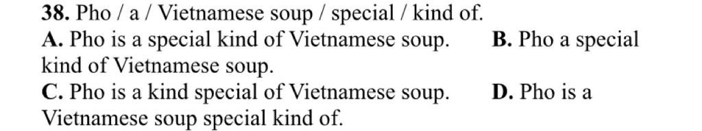 Câu 38. Pho / a / Vietnamese soup/ special / kind of.