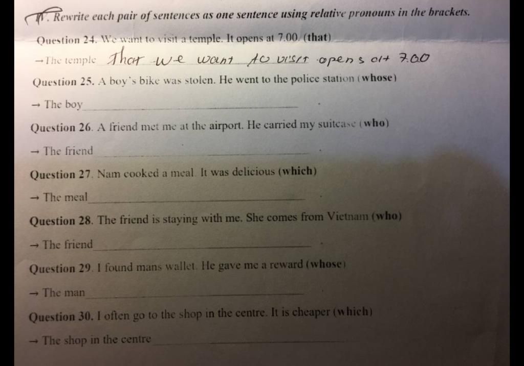 27. The meal which Nam cooked was delicious.