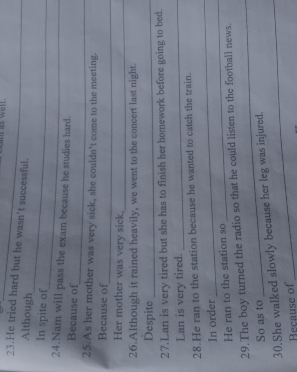 27. Lan is very tired, however, she has to finish her homework before going to bed