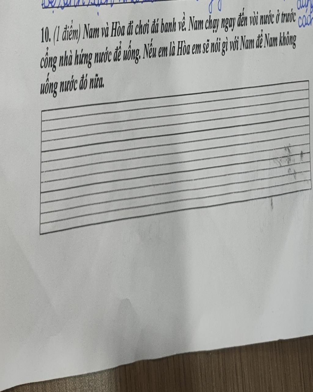 - Em sẽ bảo bạn là vì đây là vòi nước , chứa nhiều vi khuẩn và là nước ngọt chưa qua xử lý để trờ thành nước uống . Nếu bạn không nghe thì em sẽ nhắc nhở bạn , nếu lần 2 bạn vẫn thế nữa thì em sẽ bảo bạn là không chơi với cậu nữa và sẽ nói với bố mẹ câụ