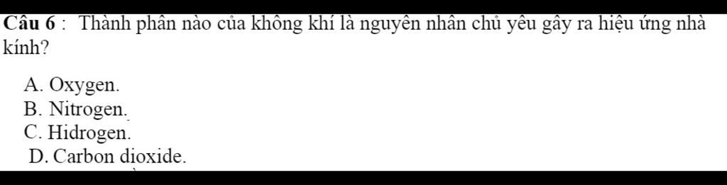 câu 6 thành phần không khí là nguyên nhân chủ yếu gây ra hiệu ứng nhà kính