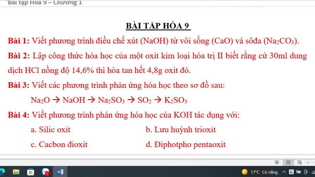 Bài 1: Viết phương trình điều chế xút (NaOH) từ vôi sống (CaO) và sôđa (Na2CO:).