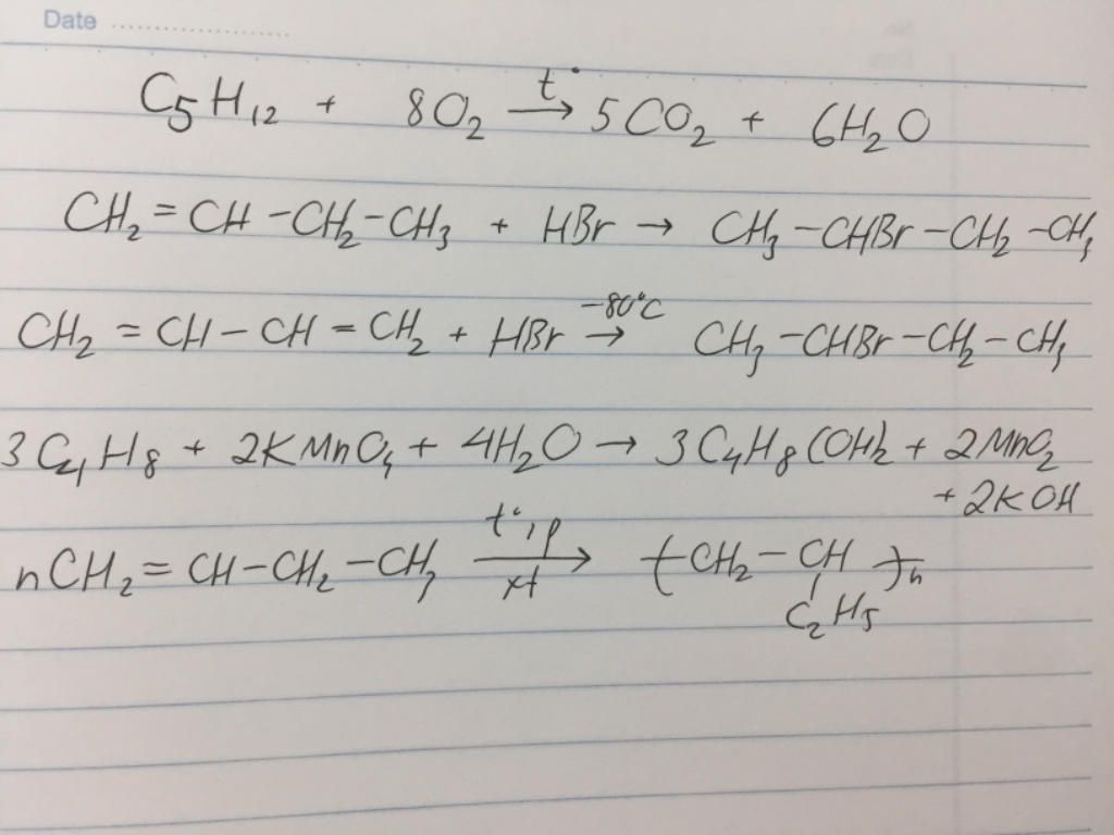 Đốt pentan: C5H10+15/2 O2-->5CO2+5H20