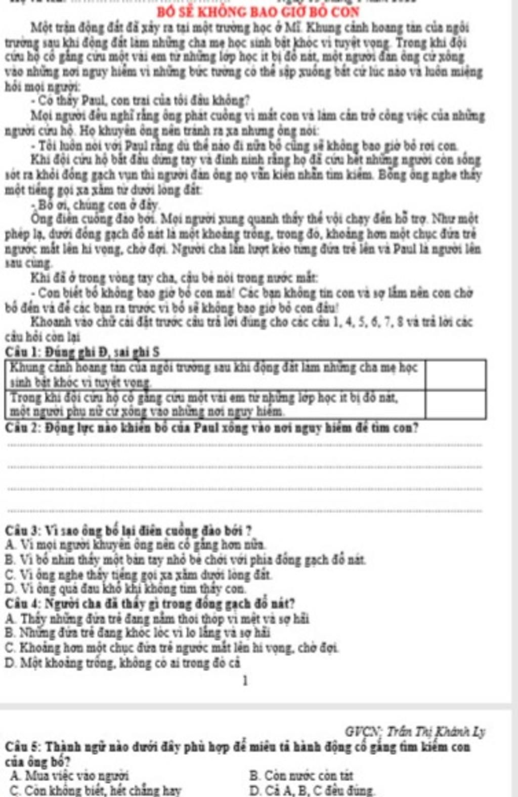 Người cha đã thấy trong đống gạch đổ nát là: khoảng hơn một chục đứa trẻ ngước mắt lên hi vọng, chờ đợi