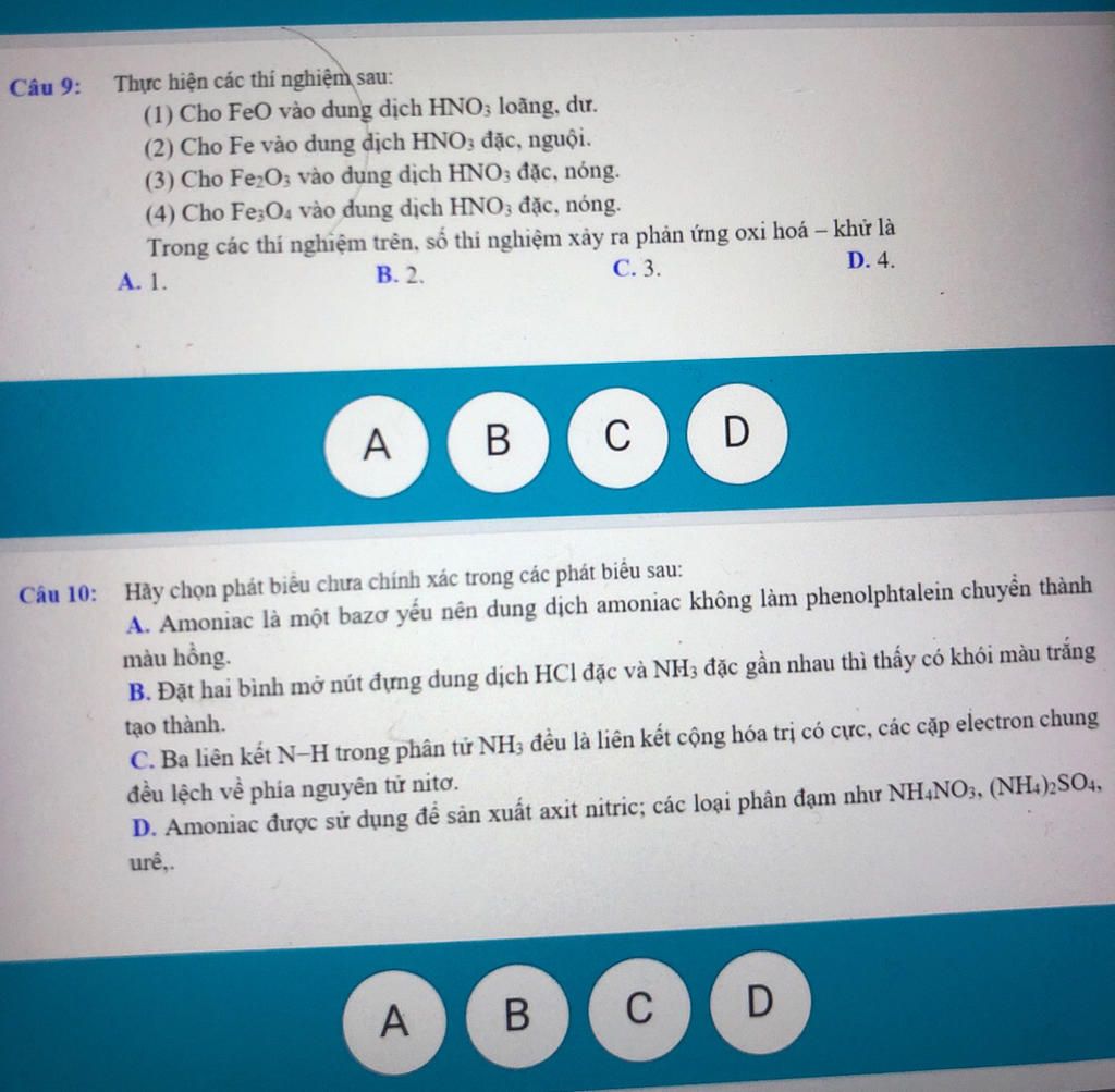 → Có 4 thí nghiệm là phản ứng oxi hóa khử.