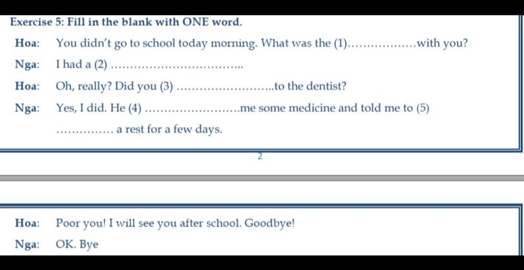 -Told me to take a rest for a few day.(Đã nói với tôi rằng hãy nghỉ ngơi một vài ngày)