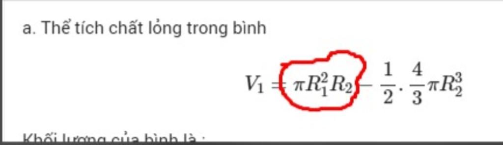 - Có thể tích toàn phần của phần trong nước : pi . tiết diện đáy . chiều cao , thay chiều cao là R2 được hệ thức như trên