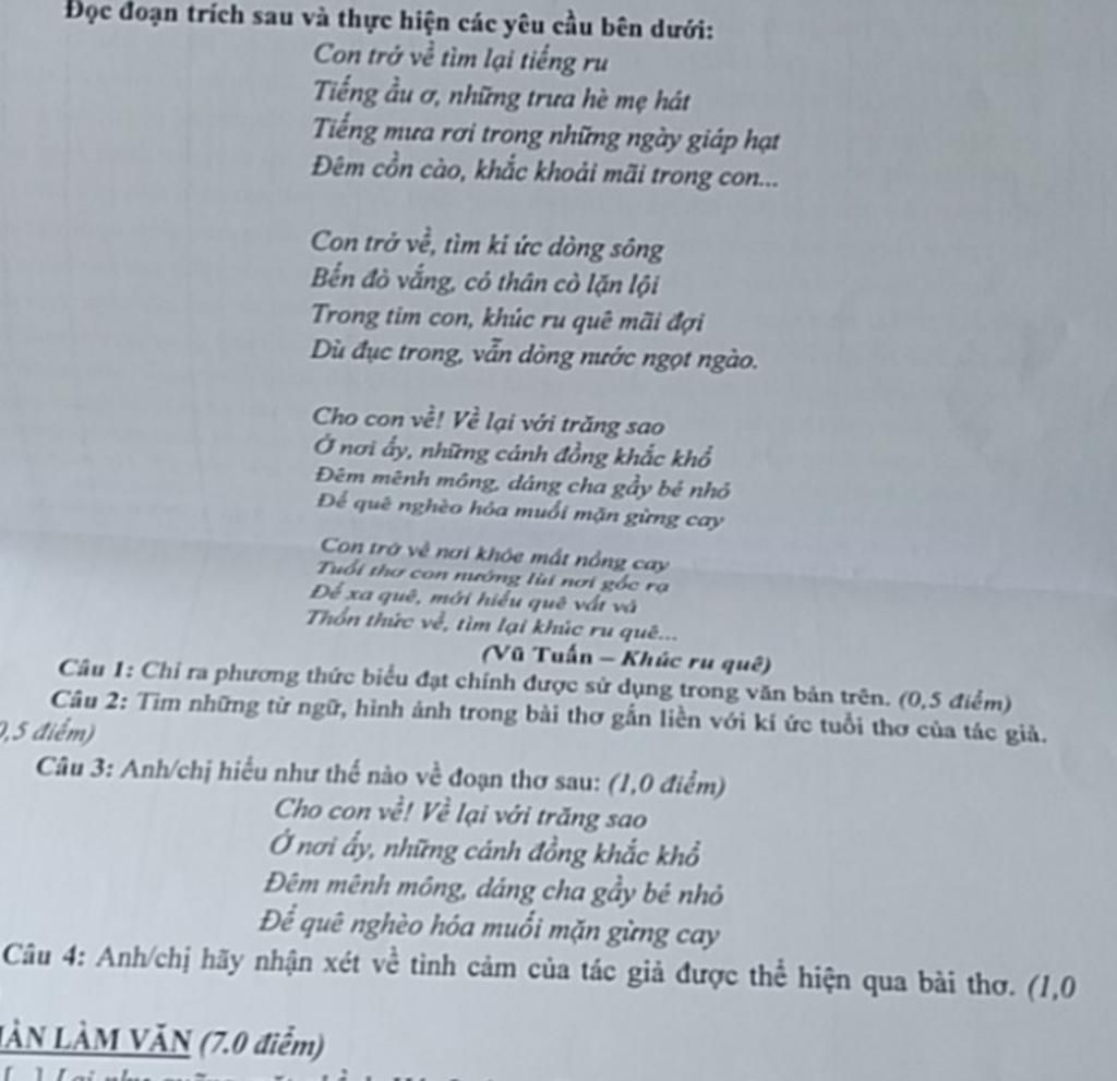 Đọc đoạn trích sau và thực hiện các yêu cầu bên dưới: