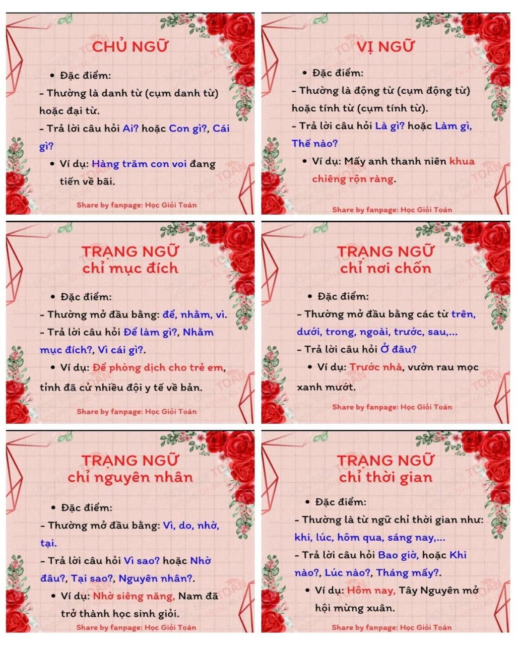 Tớ làm rồi và gửi bạn thêm về chủ ngữ, vị ngữ ,trạng ngữ luôn nhá . 😖💓