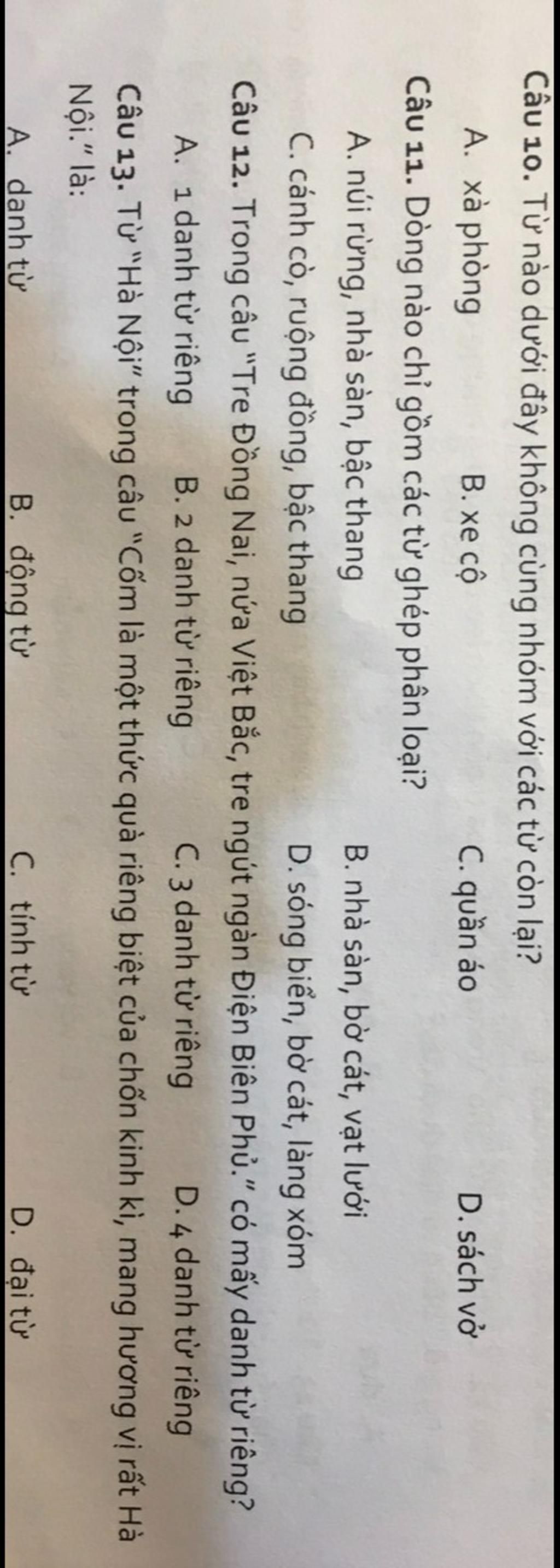 +Câu C, D: từ cánh cò, bờ cát không phải từ ghép.