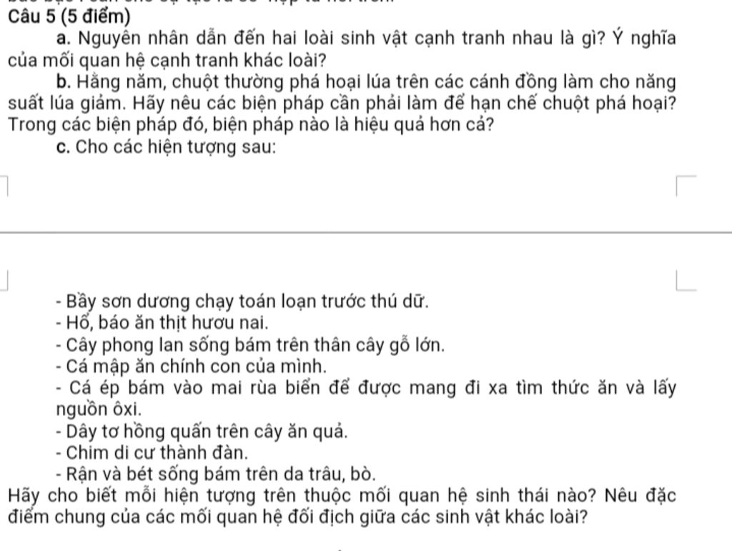 a, Nguyên nhân dẫn đến cạnh tranh là do sự xung đột về lợi ích giữa các loài.