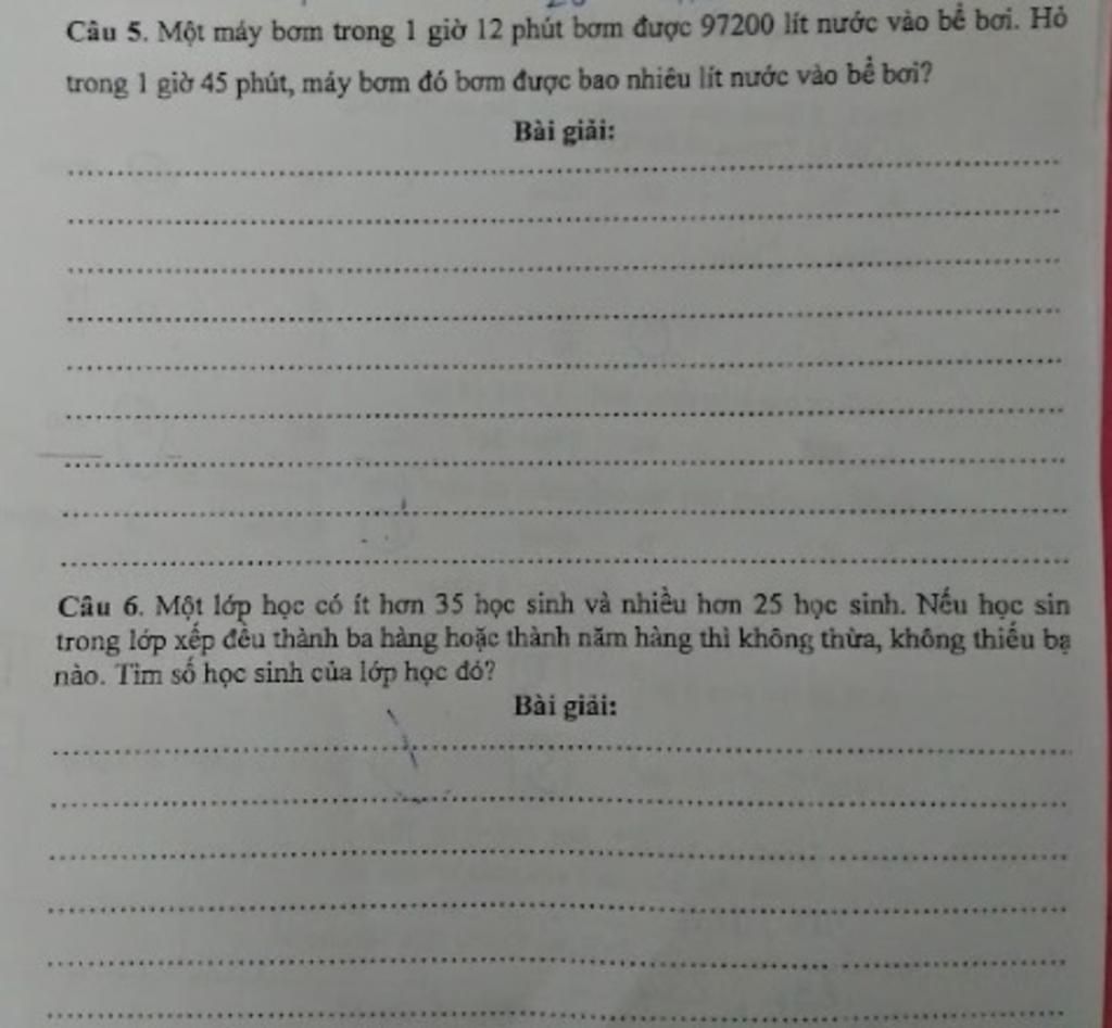 Trong 1 giờ 45 phút , máy bơm đó bơm được