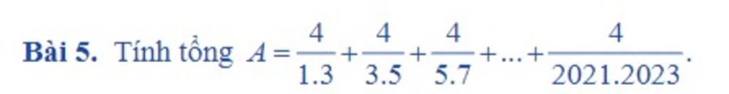 `A = 1/(1.3) + 1/(1.5) + 1/(1.7) + ... + 1/ (2021.2023) `