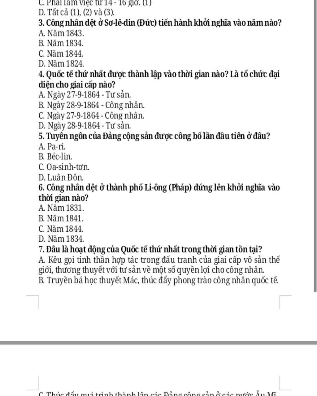 Câu 4: B Ngày 28-9-1864 - Công nhân