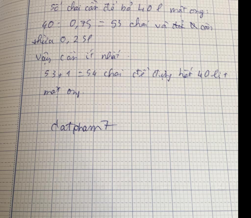 Để đựng hết 40 lít mật ong thì người đó cần số chai là: