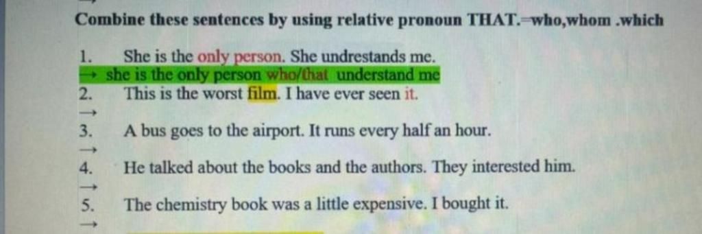 $\text{ 5. The chemistry book which I bought was a little expensive }$