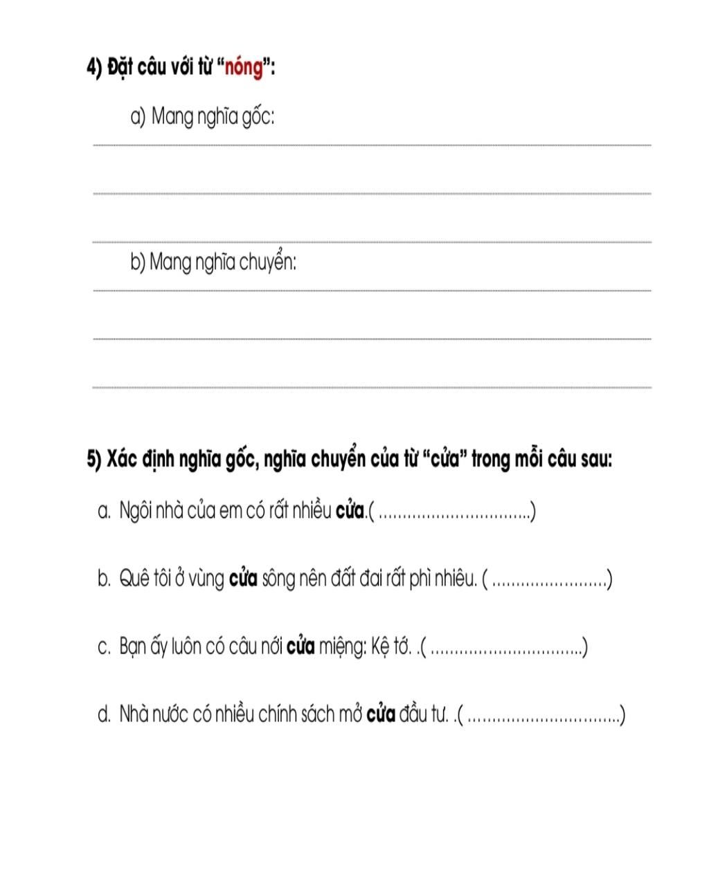 5) Xác định nghĩa gốc, nghĩa chuyển của từ “cửa" trong mỗi câu sau: