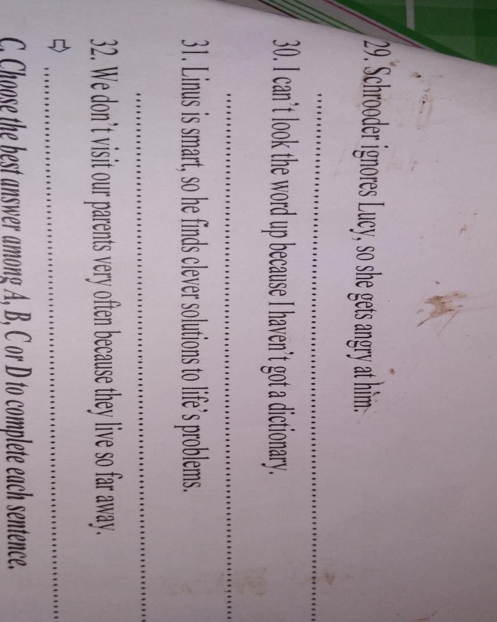 29. If Schrooder didn't ignore Lucy, she wouldn't get angry at him.