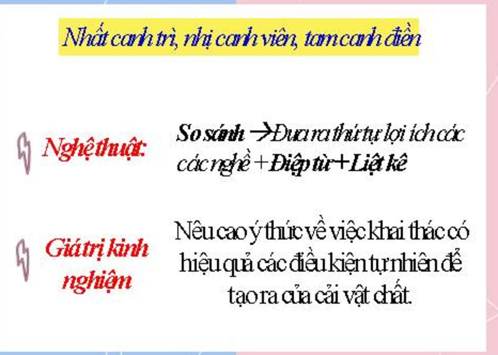Sử dụng phép tu từ liệt kê: để liệt kê các yếu tố quan trọng để trồng lúa nước