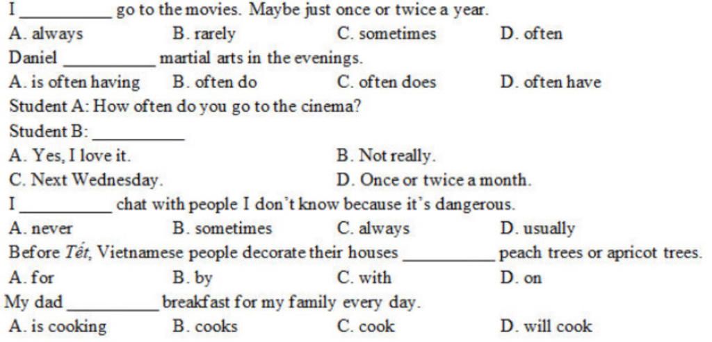 `->` Học sinh B : Một hoặc hai lần mỗi tháng.