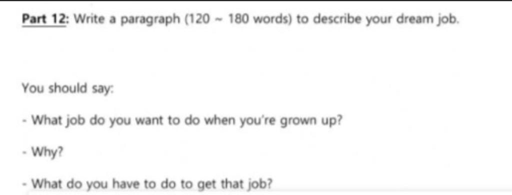 $Write$ $a$ $paragraph$ $to$ $describe$ $your$ $dream$ $job.$ $(teacher)$ :