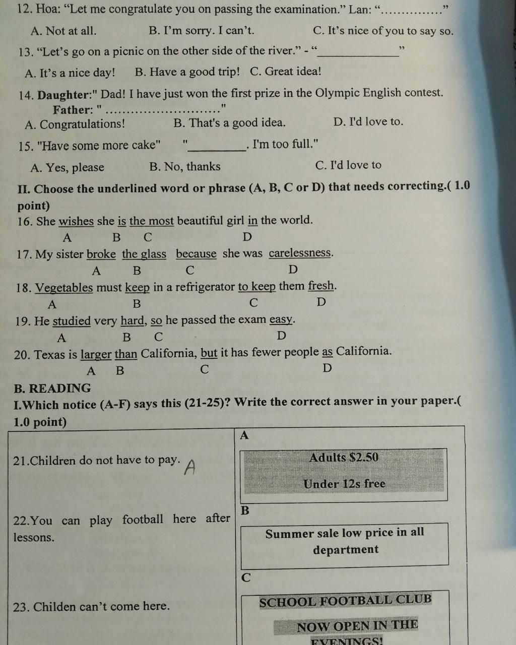 14.A : chúc mừng