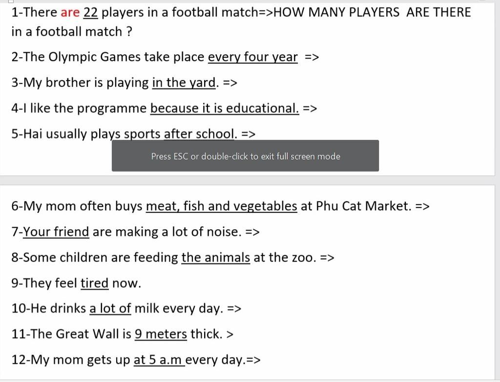 Mình cho bạn thêm cách đặc câu hỏi dựa trên phần gạch chân của câu trả lời!