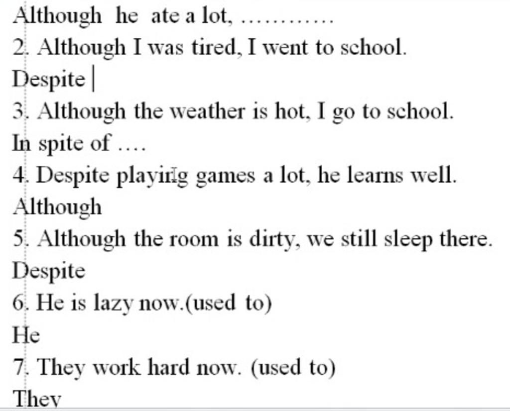 `4`, Despite viết lại với although