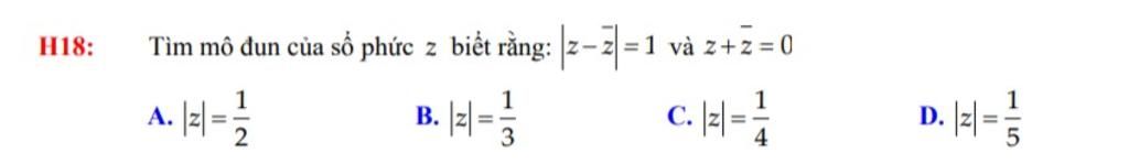 $z+\overline{z}=0 \Leftrightarrow z=-\overline{z}\\ |z-\overline{z}|=|z+z|=|2z|=2|z|=1 \Rightarrow |z|=\dfrac{1}{2}.$