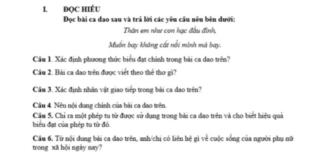 Câu 4: Nội dung chính: mượn hình ảnh con hạc để nói về thân phận của người phụ nữ