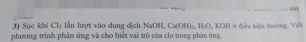 -->Cl2 vừa là chất khử và cũng vừa là chất oxi hóa Cl2 từ 0-->1 và cũng từ 0-->-1 trong tất cả các phương trình trên