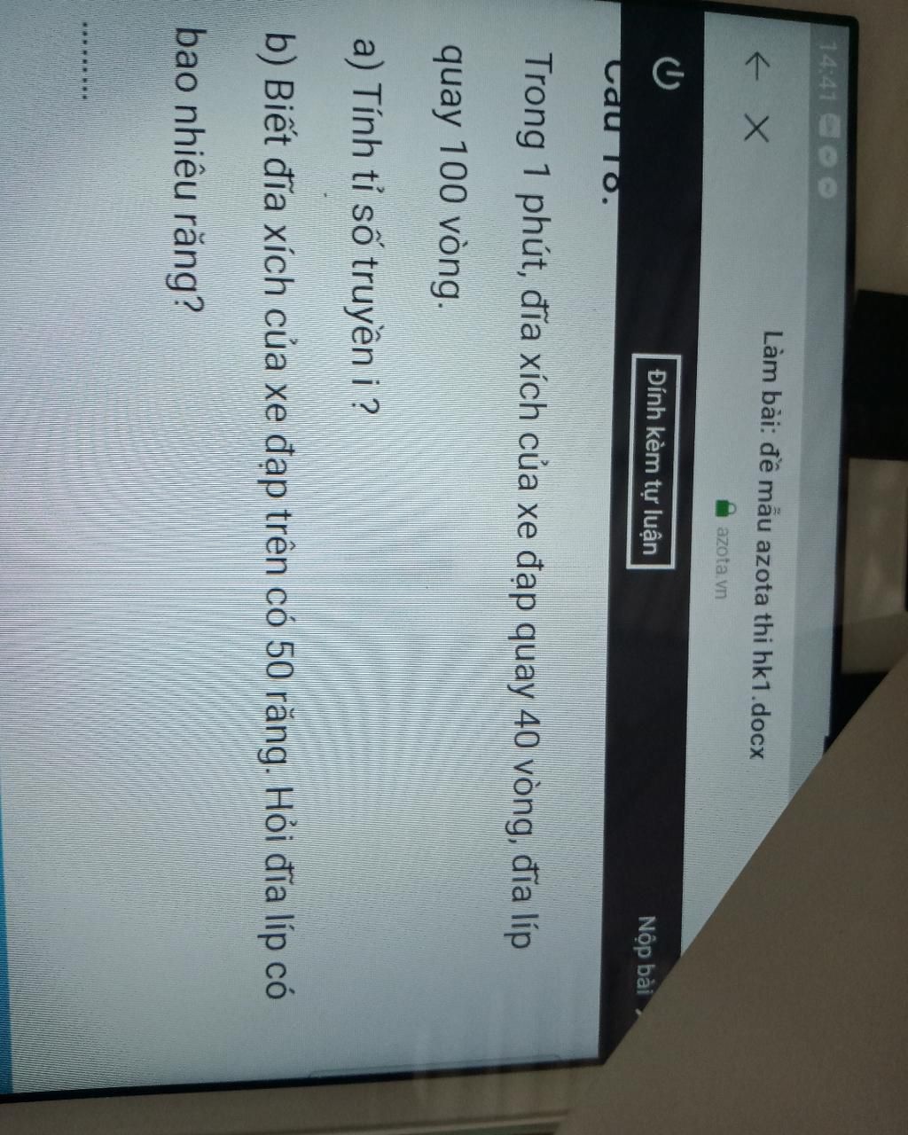 $Z_{2}=$$\dfrac{Z_{1}}{i}=$$\dfrac{50}{2,5}=20$ (răng)