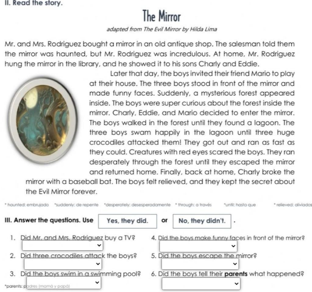 1. No , they didn't. (Dòng số 1 ; phải là buy a mirror )