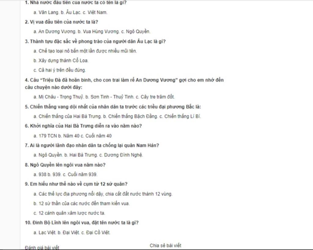 `6`: Khởi nghĩa `2` bà Trưng diễn ra vào ngày `8`/`3`/`40` nên không thể là cuối năm `40` được